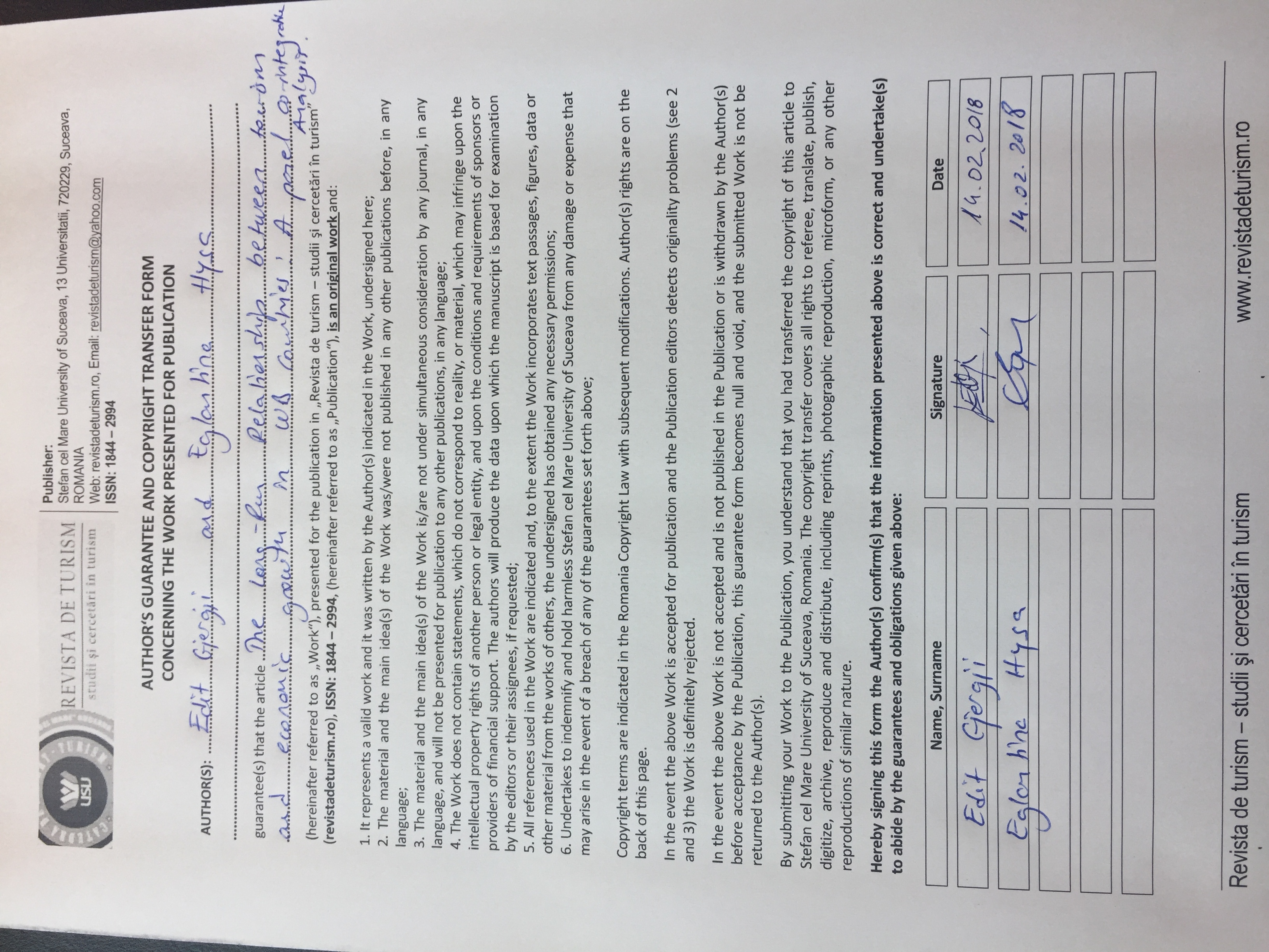 Revista de Turism: Studii si Cercetari in Turism (RDT) is an open access scholarly journal that allows free access to its content (articles, issues). RDT is available online to the readers without financial, legal, or technical barriers (no publication charges), based on the theory to keep an article's content intact. Authors can use Creative Commons licenses to specify usage rights of articles. Copyright of articles belong to authors.