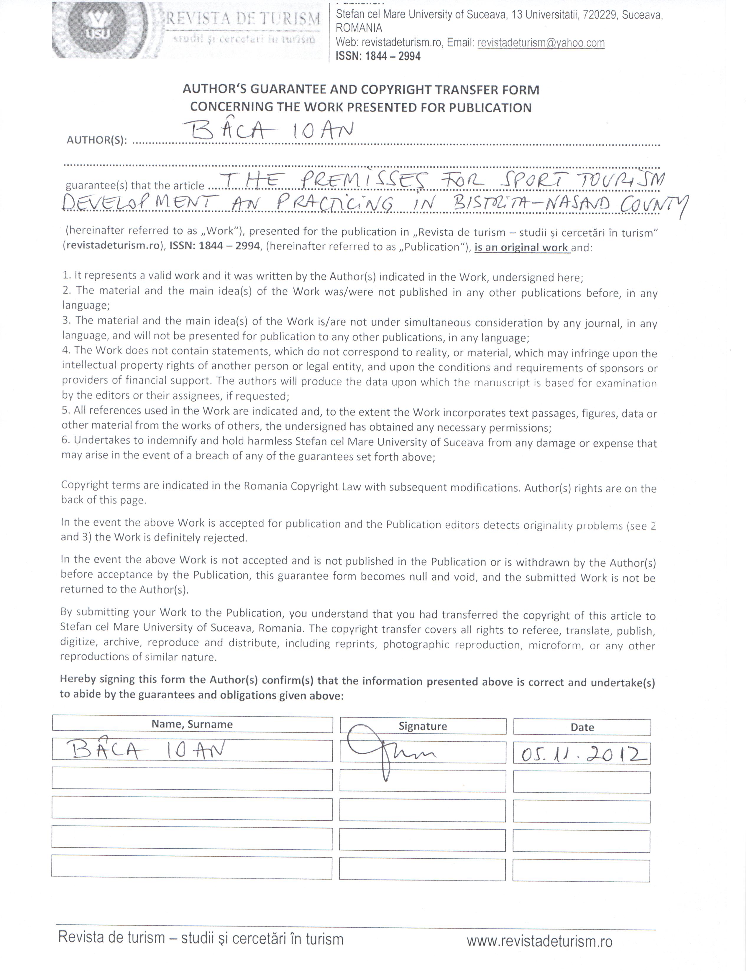 Revista de Turism: Studii si Cercetari in Turism (RDT) is an open access scholarly journal that allows free access to its content (articles, issues). RDT is available online to the readers without financial, legal, or technical barriers (no publication charges), based on the theory to keep an article's content intact. Authors can use Creative Commons licenses to specify usage rights of articles. Copyright of articles belong to authors.