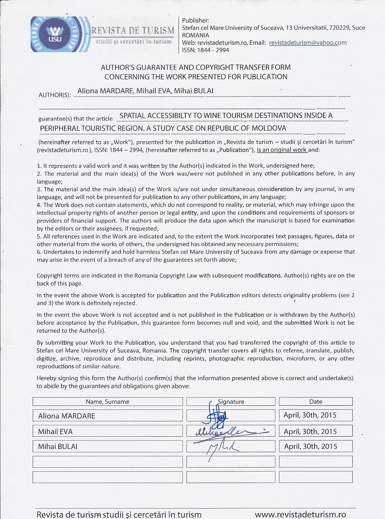 Revista de Turism: Studii si Cercetari in Turism (RDT) is an open access scholarly journal that allows free access to its content (articles, issues). RDT is available online to the readers without financial, legal, or technical barriers (no publication charges), based on the theory to keep an article's content intact. Authors can use Creative Commons licenses to specify usage rights of articles. Copyright of articles belong to authors.